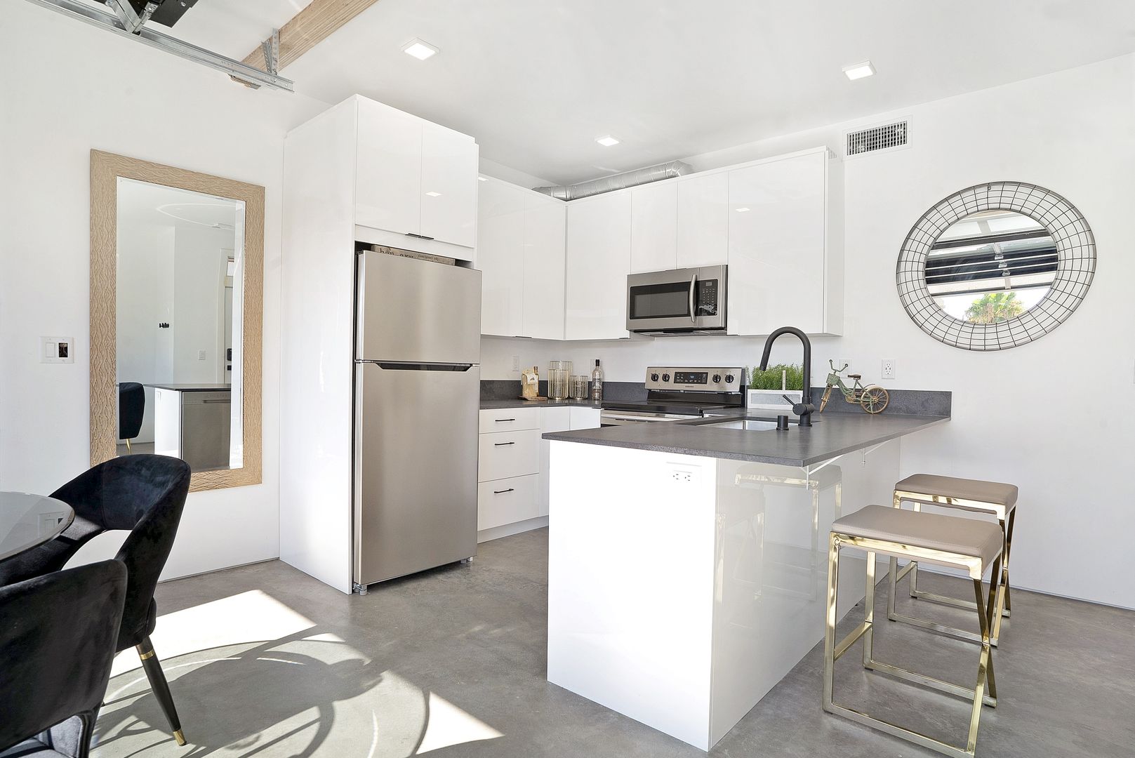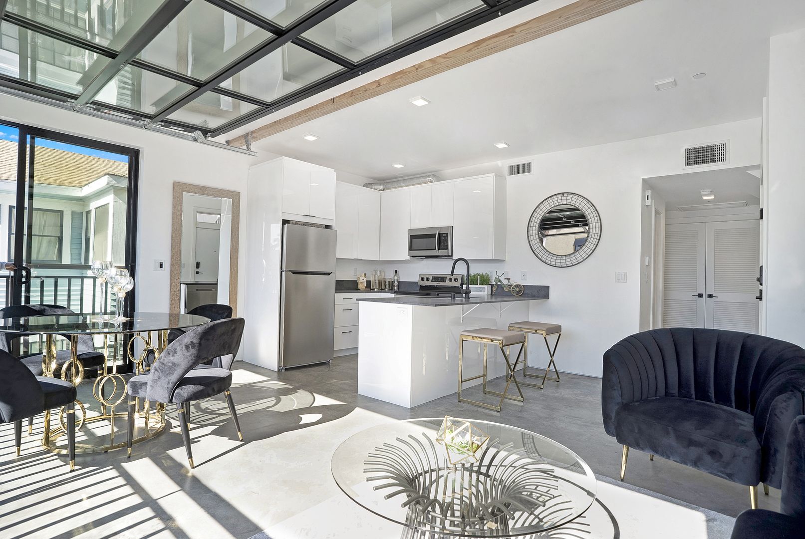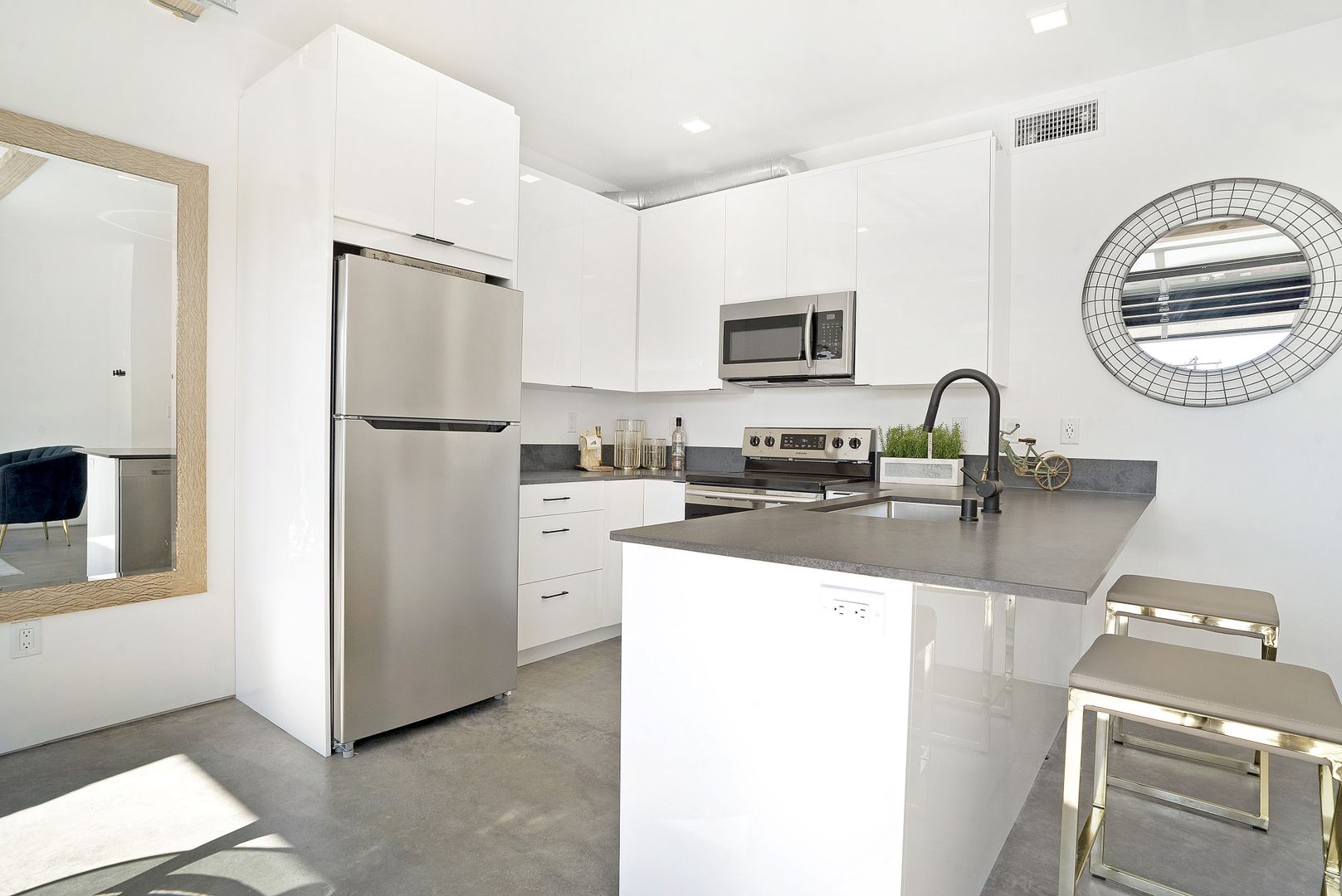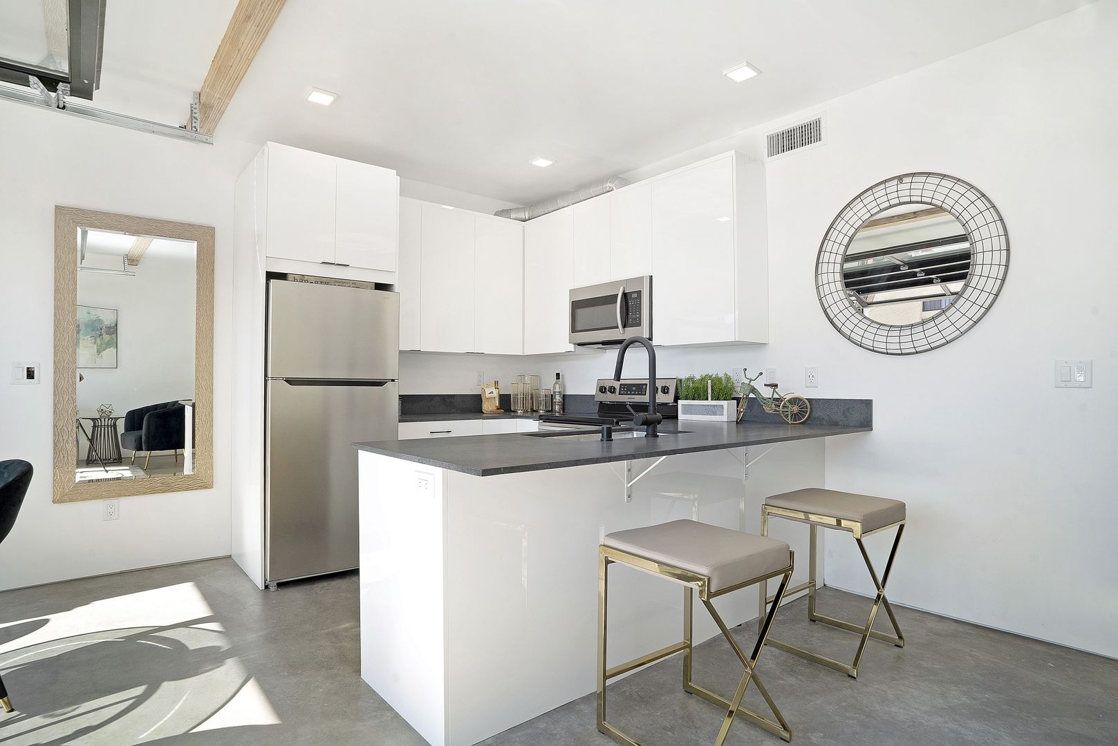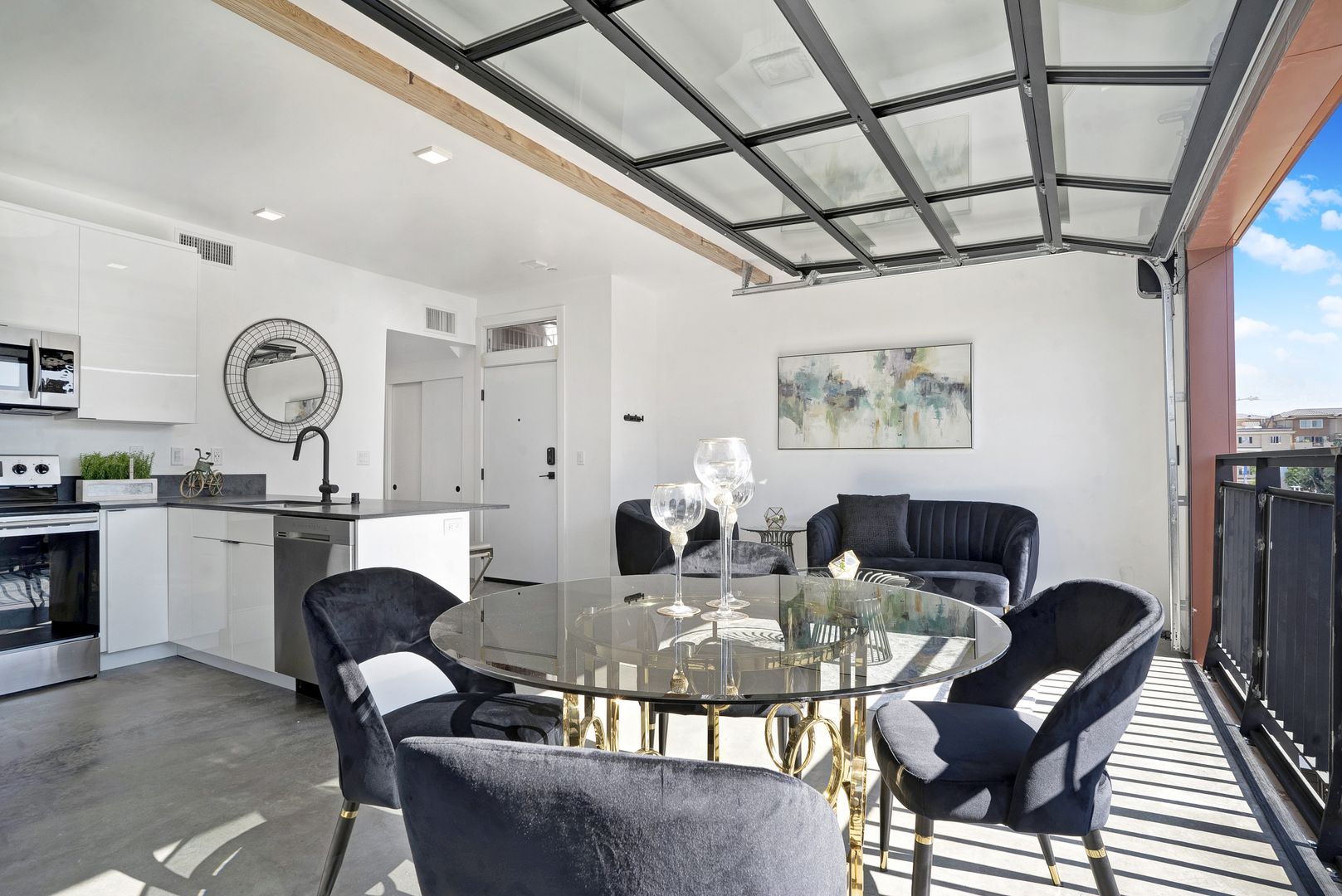 Enjoy the San Diego sunshine and explore the Hillcrest and Mission Hills area which is extremely walkable and bike-friendly. Nest is your modern home in the center of fine, urban living. Our apartment homes feature the latest in smart home technology and efficient features. The unit offers smartphone-powered/keyless entry, a Skybell doorbell, LED lighting, USB outlets, and a smart thermostat. Feel confident in your home’s sleek look with contemporary matte black fixtures, stainless steel appliances, quartz countertops, and luxury polished concrete flooring. Relax in your home’s open space with tall ceilings. This feature is perfect for entertaining, yoga, and soaking up that golden San Diego sun.